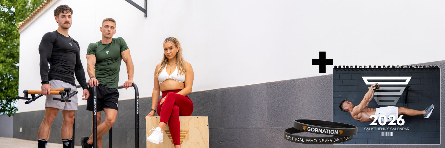 Calisthenics is a special sport, a sport that brings special results, involves special skills and also has special demands on the body. Since 2015, GORNATION has focused on supporting calisthenics and street workout athletes with high-quality equipment and clothing, helping them achieve their goals. No matter if it is planche, handstand or push-ups, each of the calisthenics exercises is a challenge for muscles, tendons and joints. To counteract this and make workouts in the home gym or outside in the calisthenics park more successful, painless and fun, GORNATION develops equipment and accessories in cooperation with professional and experienced athletes that have the power to take your workout to the next level. Start your training now, buy your fitness accessories and achieve your fitness goals with the tools & clothing pieces from GORNATION!