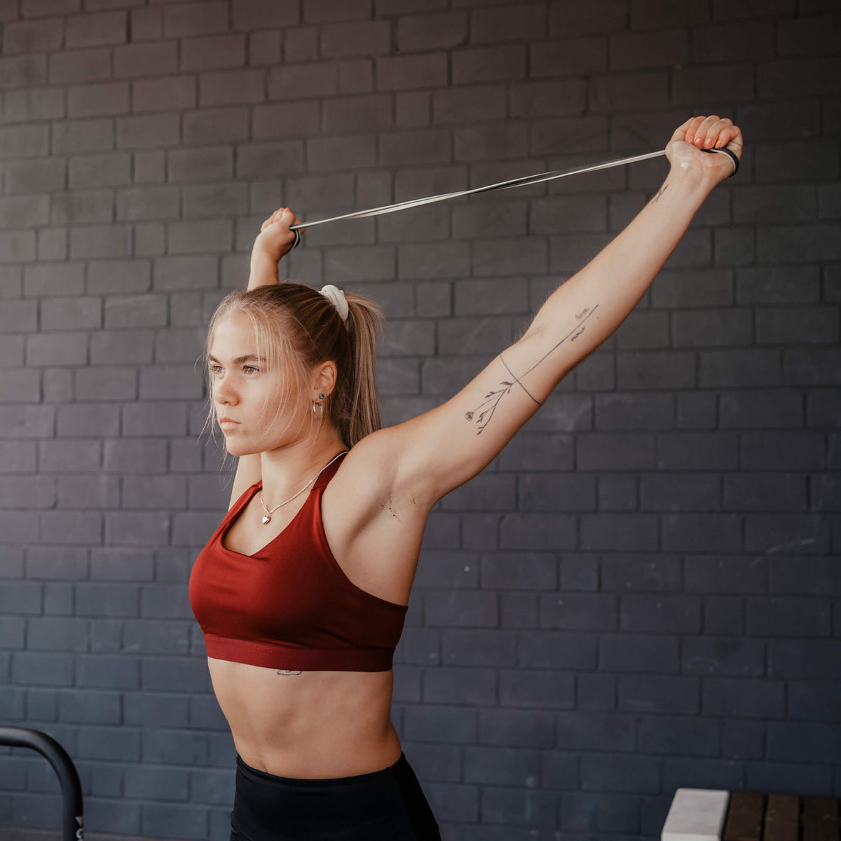 Our 2.08m long resistance bands offer a wide range of applications such as warm-up, stretching and as resistance or support in your training. They are perfect for learning new exercises such as pull-ups, front levers and planche. The bands can be cleaned with soap and water and then hung up to dry. Pro tip: For maximum durability, sprinkle with commercial baby powder after cleaning. Avoid exposing the straps to prolonged heat or direct sunlight and transport them rolled up in the enclosed transport bag so that the zipper of your sports bag does not damage the strap. If the strap is torn or damaged, it should be replaced to ensure safety during training.