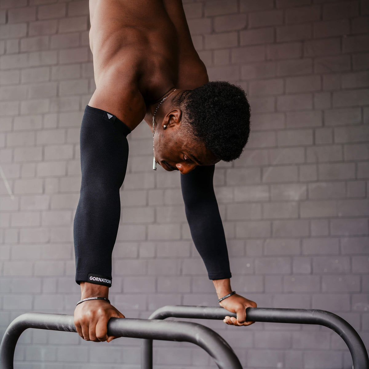 GORNATION's compression arm sleeves are designed for comfort and support, making them ideal for basics, skills, dynamics, and weighted calisthenics. The pleasant compression and stability help to prevent overloading and improve performance. The set includes two bandages and a convenient transportation bag.