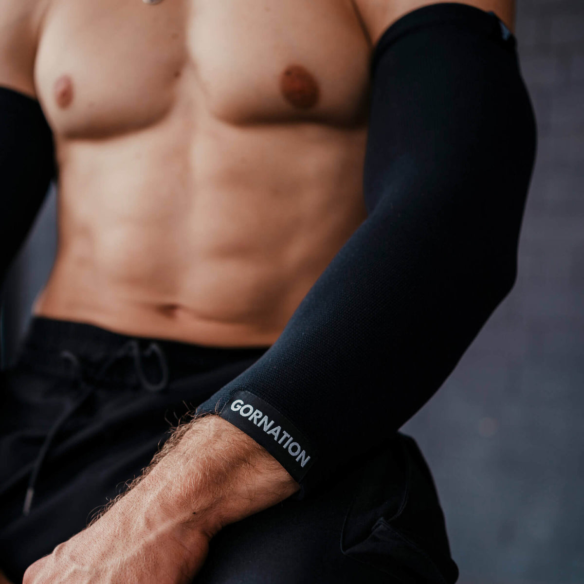 Our Elbow Sleeves are made of the same material and offer the same benefits as Arm Sleeves. However, the Elbow Sleeves are slightly shorter, so only the lower biceps and triceps are covered. Whichever variant suits you better is purely a matter of preference.
