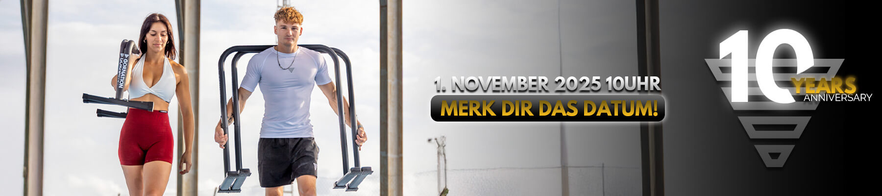 Ja! Zum 10-jährigen Jubiläum von GORNATION erwarten dich exklusive Angebote ab einem Einkaufswert von 50 €, inklusive kostenloser Anniversary Armbänder und einem kostenlosen Calisthenics Wandkalender 2026.