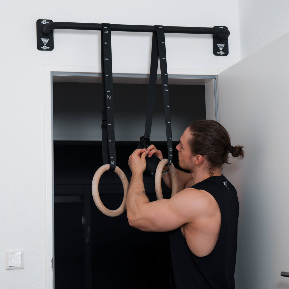 La Barre peut être parfaitement combinée avec d'autres équipements d'entraînement pour rendre ta séance d'entraînement encore plus polyvalente et efficace. Utilise des bandes de résistance pour ajouter du poids supplémentaire ou faciliter certains exercices. Avec les anneaux de gymnastique, tu peux encore intensifier ton entraînement et cibler différents groupes de muscles. La polyvalence de la Barre de Traction Murale UNI te permet de concevoir ton entraînement avec souplesse et de l'adapter à tes besoins individuels.