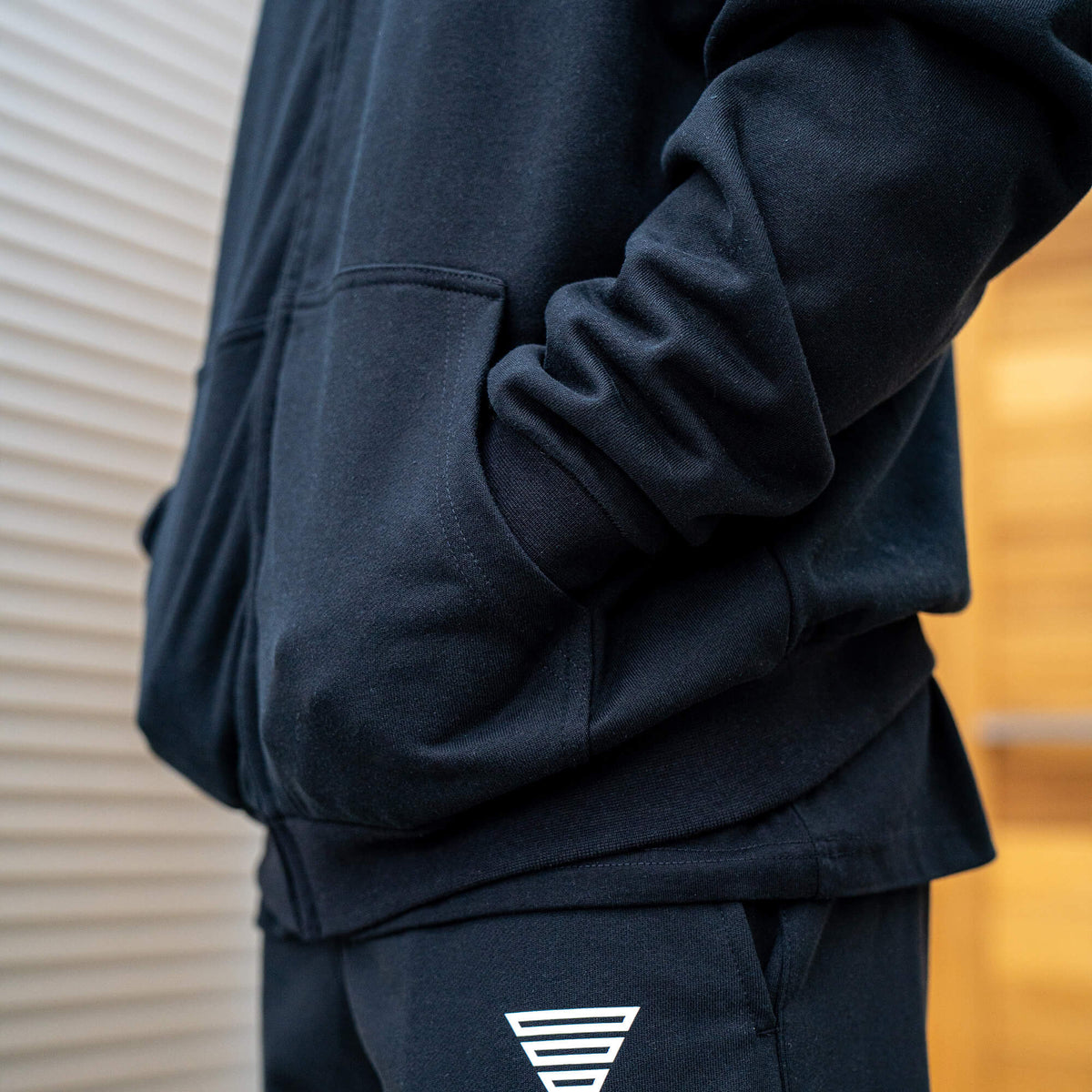 A modern streetwear jacket inspired by the anime motifs Balance, Control, and Strength.