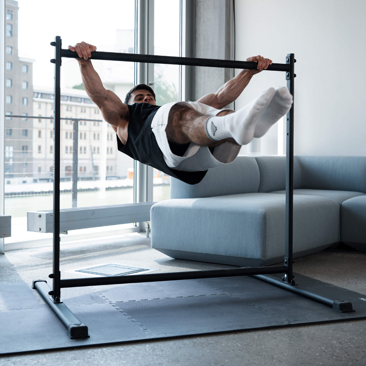 The Static Bar is designed for a variety of upper body exercises and is ideal for training static skills. You can do exercises like dips, push-ups, rows and various isometric skills like front levers, back levers and planches.